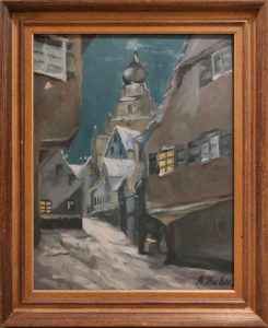 Winterliche Straßenszene aus Herrenberg, 62 x 52 cm, Leinwand. Im Spätjahr 2025 bei kleinanzeigen.de angeboten (Verkäuferin aus Deckenpfronn, Preis 330 EUR).2