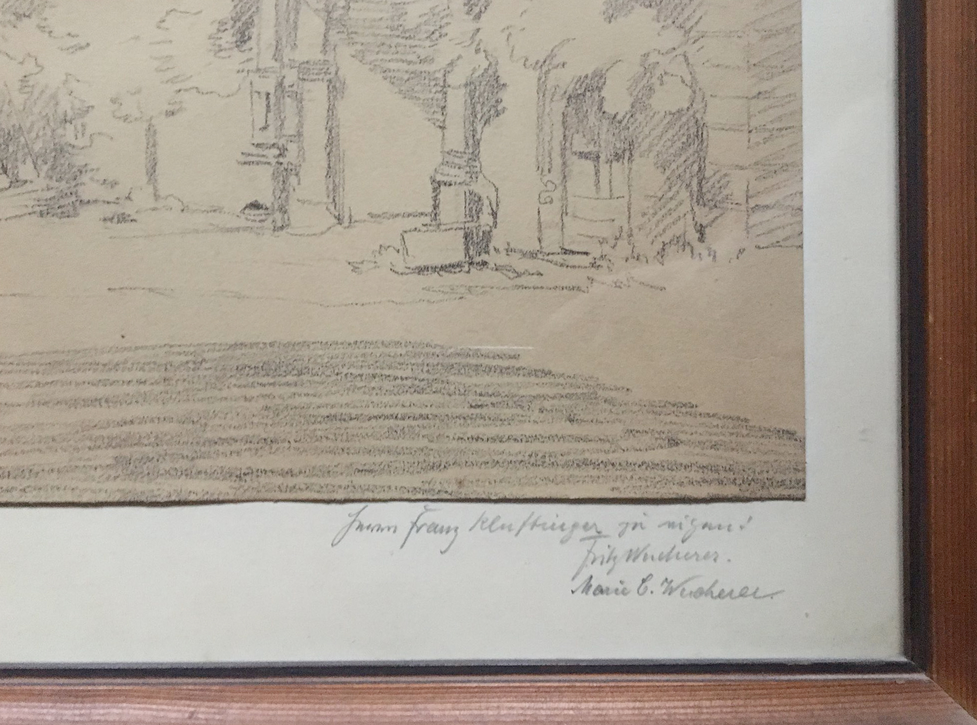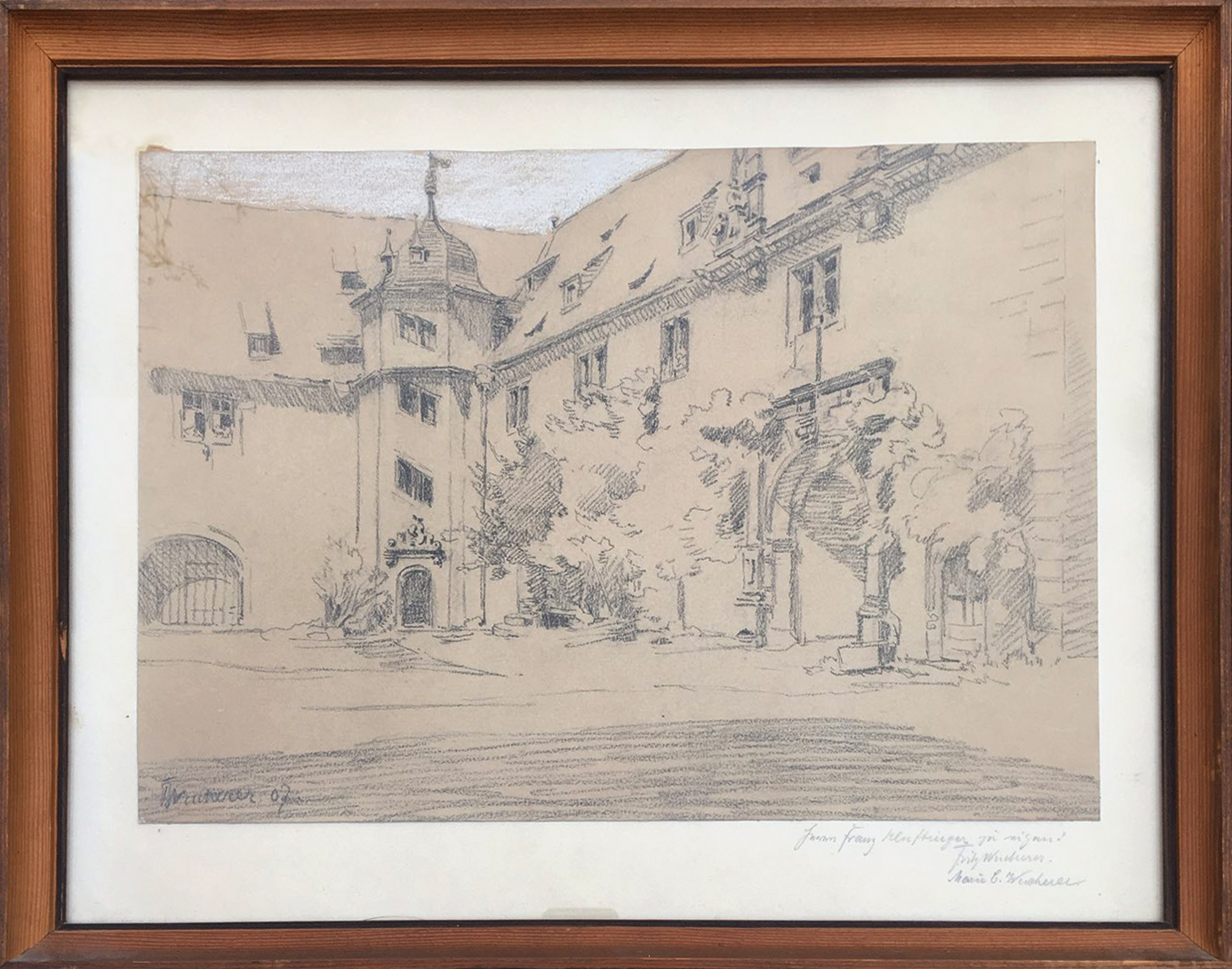 Links unten signiert „F. Wucherer 07“, zusätzliche Widmung von Fritz und Marie C. Wucherer rechts unten auf Passepartout.
