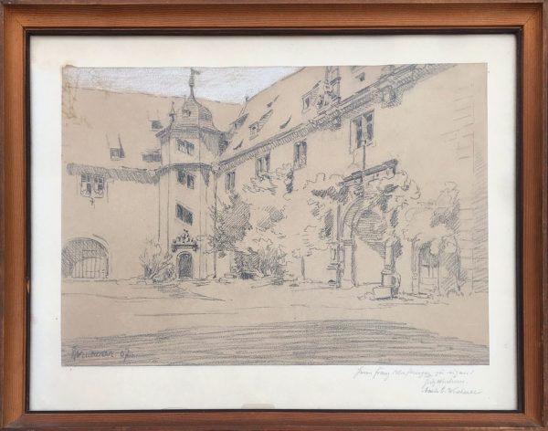 Fritz Wucherer (1873-1948) wuchs in Frankfurt auf und war ab 1901 in Kronberg im Taunus als freier Maler tätig. Seine Motive fand er überwiegend in der Umgebung von Frankfurt. Dass er sich aber auch zeitweise an Neckar und Jagst aufhielt, dürfte durch unser Motiv von 1907 sowie eine im Kunsthandel aufgetauchte kolorierte Zeichnung mit einer Szene aus Hirschhorn am Neckar von 1934 belegt sein.